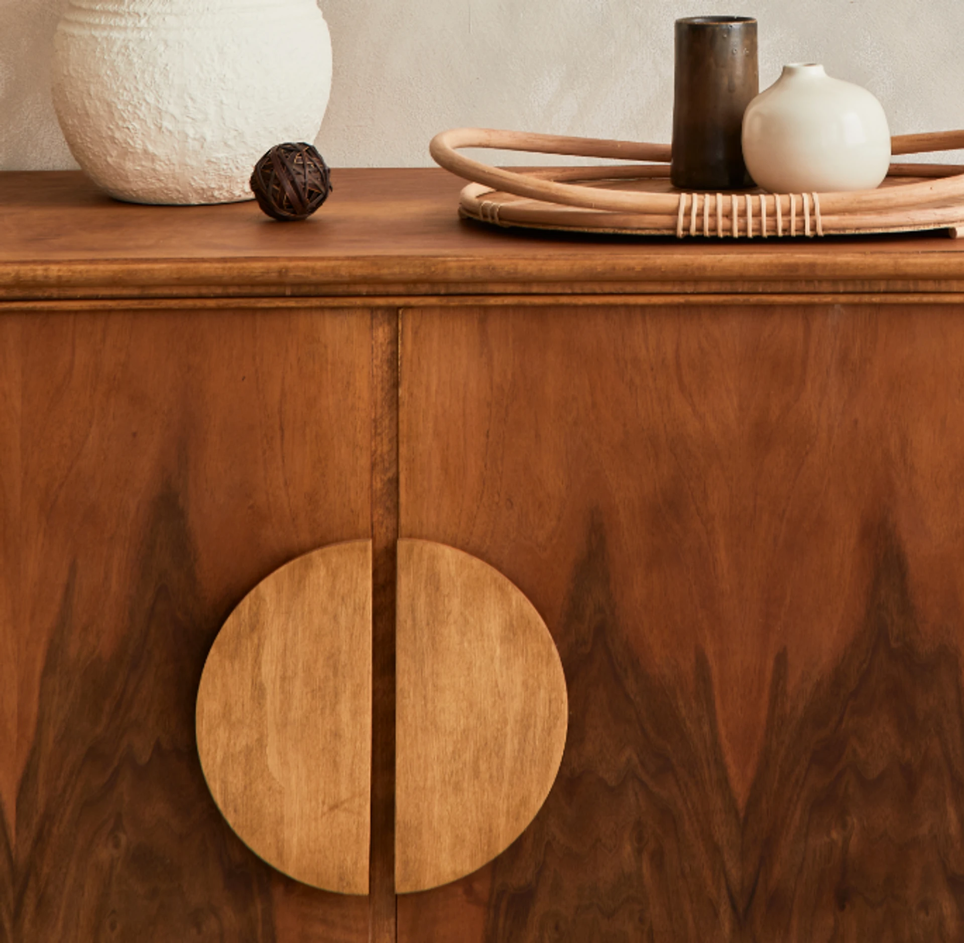 Le buffet Joe mêle élégance naturelle et esprit artisanal. Son design minimaliste met en valeur le veinage unique de l’orme massif. Conçu pour durer, il trouve aussi bien sa place dans un intérieur contemporain que dans une ambiance plus bohème ou rétro.